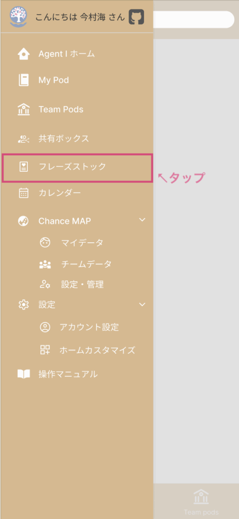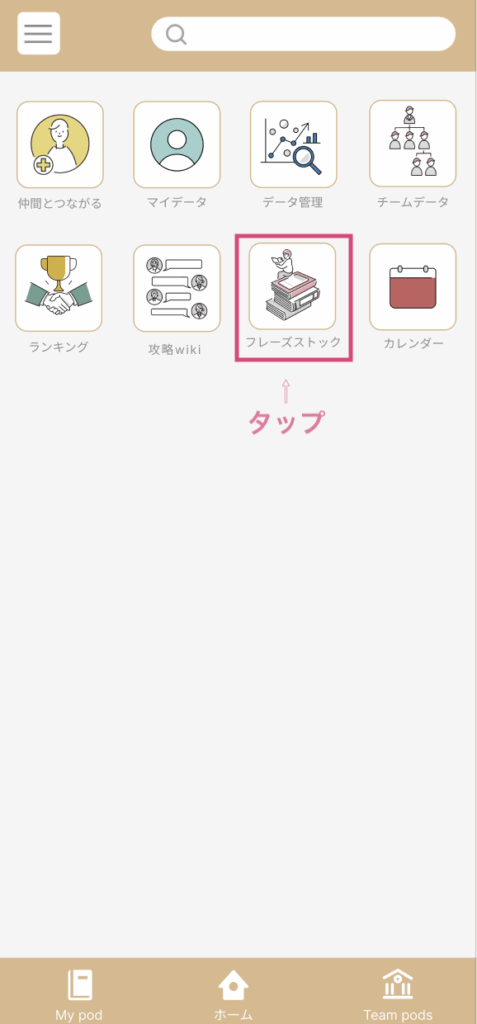 メニューの中の「フレーズストック」をタップして移動しましょう