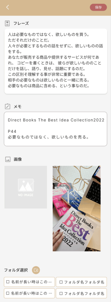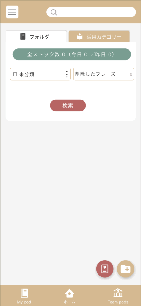 ストックしたフレーズはフォルダに分けて管理ができます。