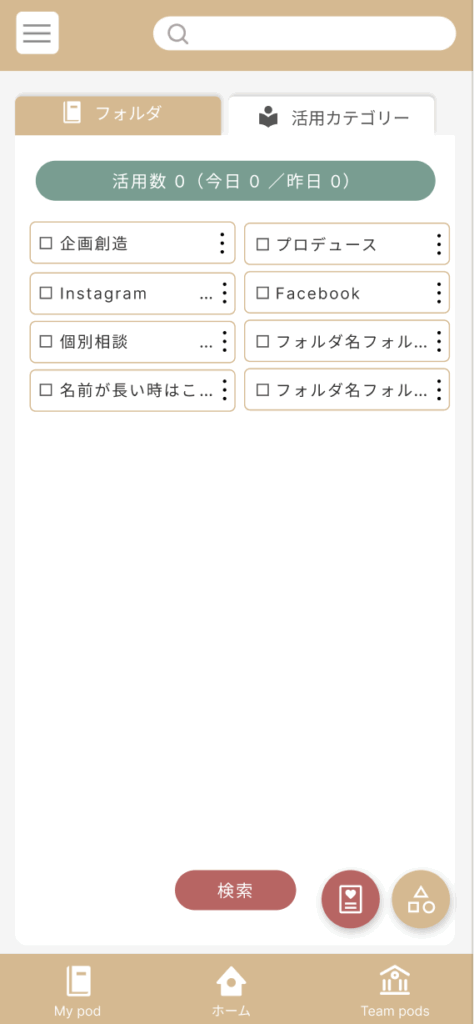 ベージュのボタン:活用カテゴリー新規作成