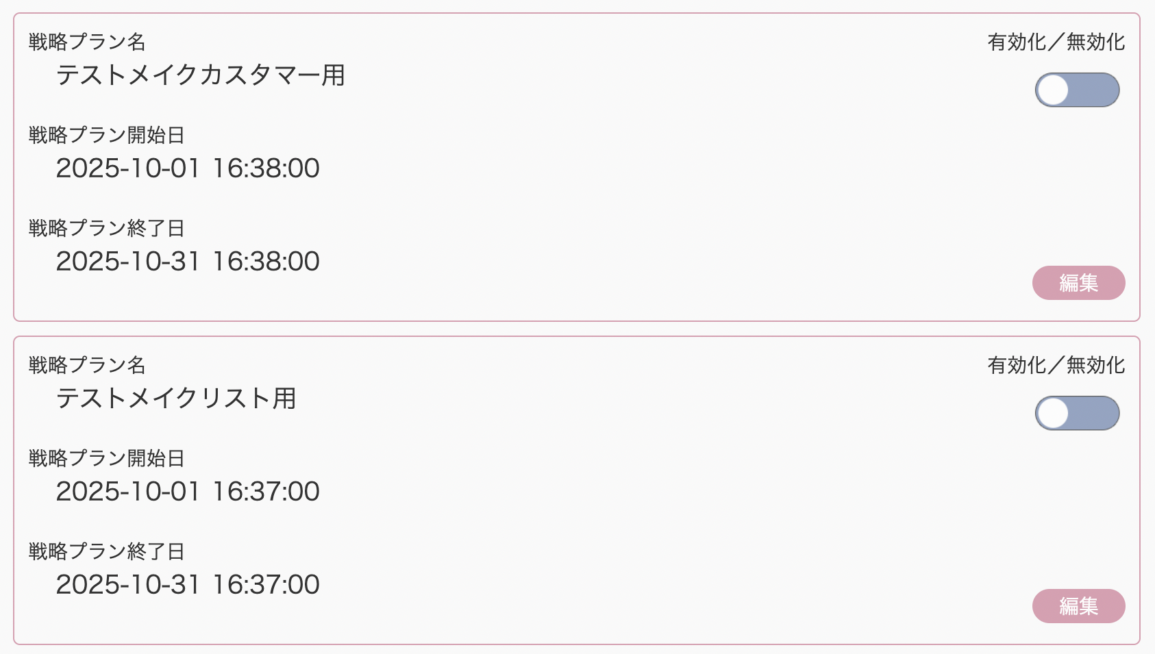 メイクリストとメイクカスタマーを分けて管理している方でも、戦略プランが柔軟に活用できます。