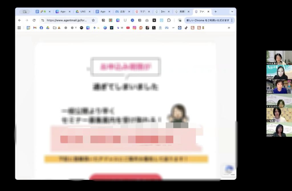 今回のAgent Youゼミでは、そんな悩みから抜け出し、「みんなはどんなページ作ってるの?」をお互いに共有し合い、ラブレターアタックモードの「今日から動ける一手」を見つ出していきました。