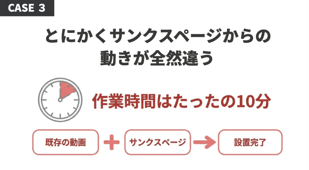 ケース③既存動画をサンクスページに置くだけ、作業10分で申込みの動きが激変