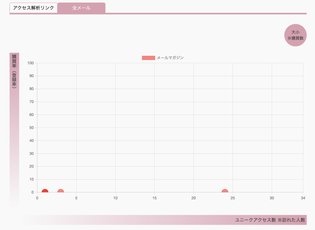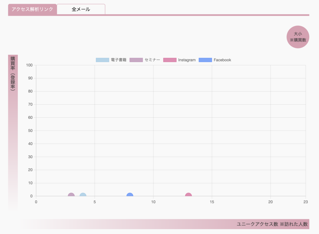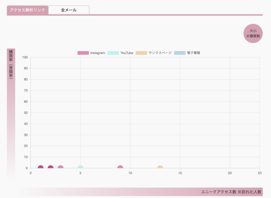 これらは全て、色のついたバブルが下に沈み混んでいて、ランディングページを含む動線の設計に問題があるため、申込みに繋がっていないことが考えられます。