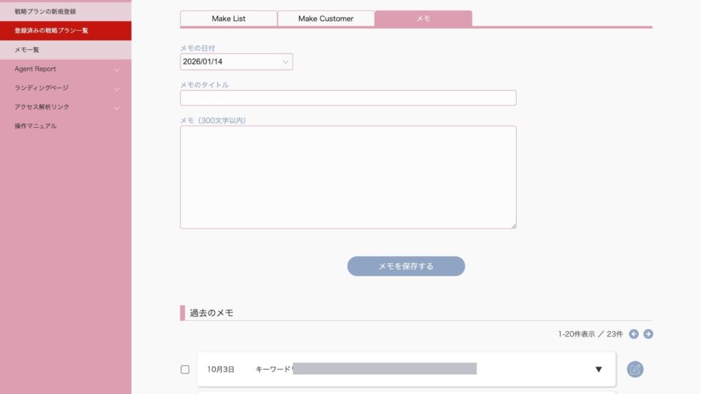 Agent LOGの戦略プランに「メモ機能」があります。