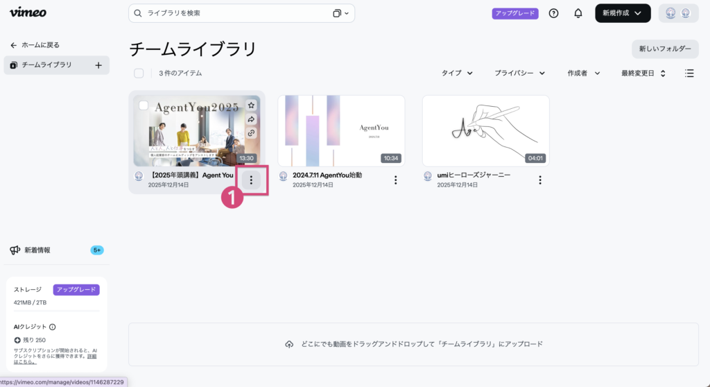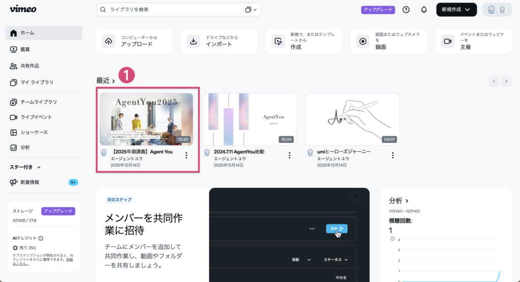 今回ご紹介するステップ型ONE/フリーでオススメする設定は、vimeoの無料プランでは利用できません。