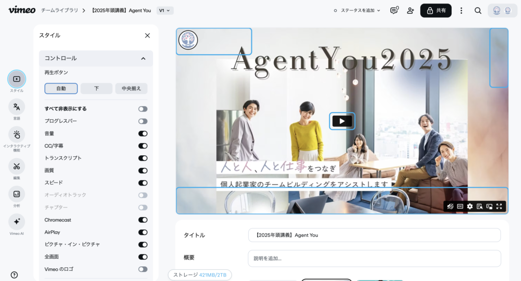 だからAgentYouでは、テンプレートに合わせてvimeoの設定を変えることをおすすめしています。